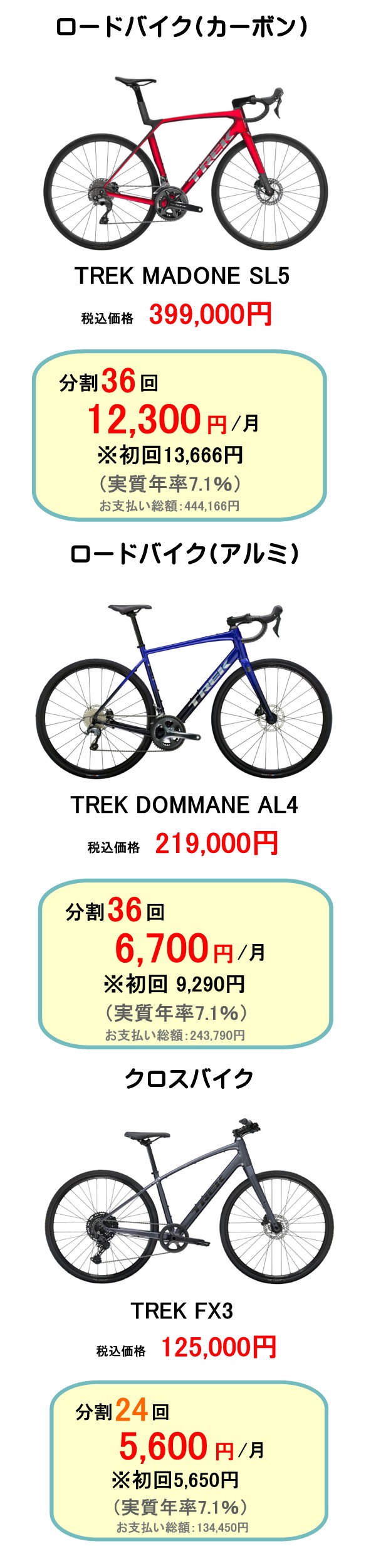 ロードバイクやマウンテンバイクも同様です。詳しくは店頭でご相談下さい。